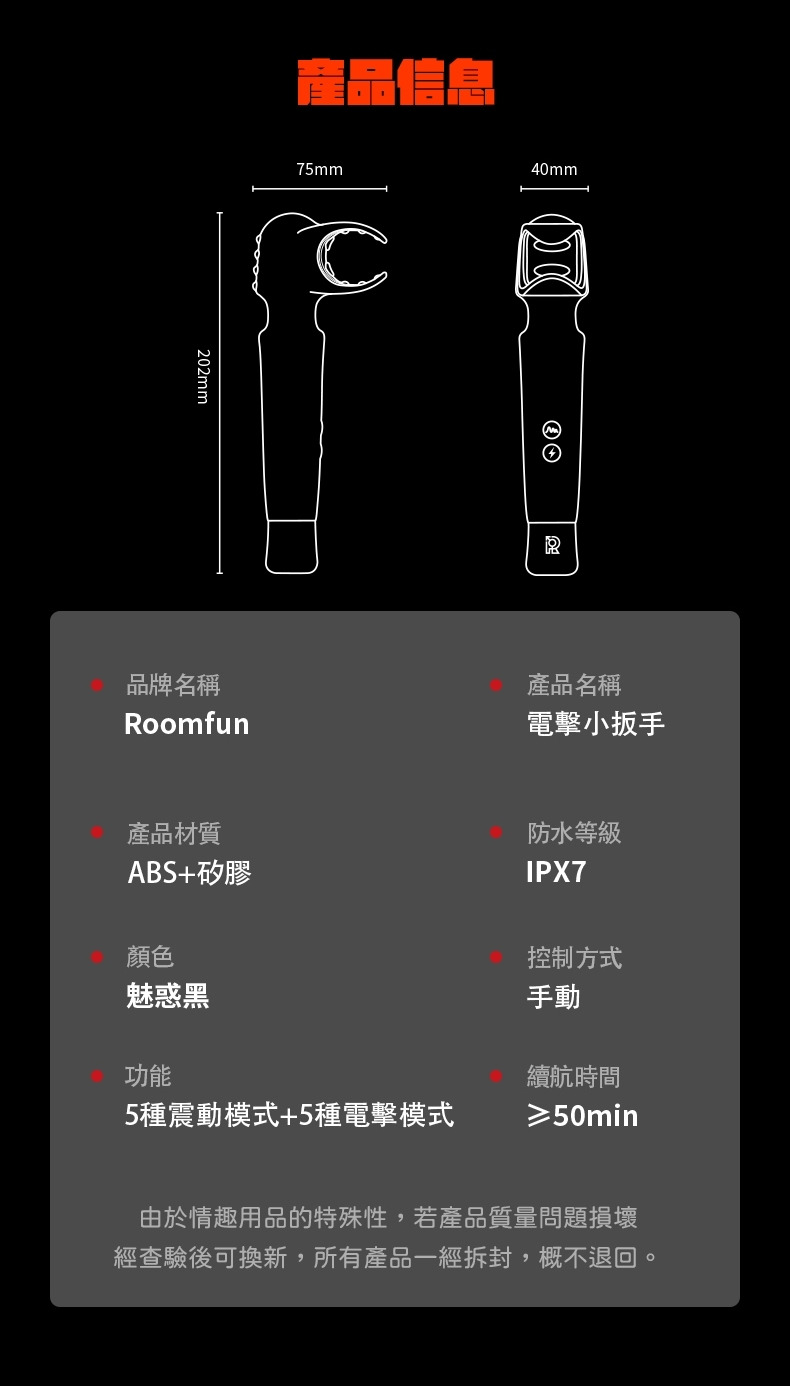 ●商品名稱:小板手3.0 三代 男用電擊AV棒 ●製造廠商:Roomfun 房趣 ●商品尺寸:全長:20.2cm、寬:4cm ●商品重量:390g